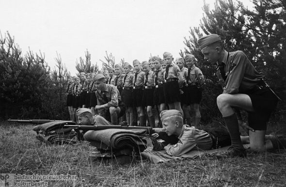 Op school leerden de kinderen dat de Vrede van Versailles (voor uitleg, zie Vrede van Versailles kop) de schuld is van de Joden en dat het Duitse volk levensruimte nodig heeft. De lesstof wat de kinderen leren is gebaseerd over het Duitse rijk. Bijvoorbeeld bij aardrijkskunde leren ze kaarten met alle afgepakte stukken land in 1919. Bij biologie leren ze dat het Duiste "ras" goed is en het Joodse "ras" slecht is. En de natuurkunde les bestaat voornamelijk uit het berekenen van de baan van een kogel of hoe snel je een brug kan bouwen. Er zijn dus in het algemeen veel lessen die gebaseerd zijn op een eventuele oorlog.